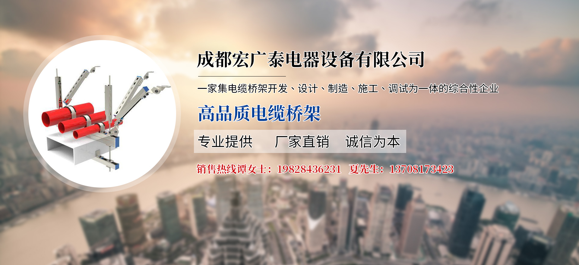 成都宏廣泰電器設備有限公司,是一家專業生產電纜橋架的公司,我公司電纜橋架選用優質冷板、優質鋼板‘采用鞍鋼、寶鋼材質的廠家,作為長期合格的供應商,表面處理分為噴漆、電鍍鋅、熱鍍鋅、靜電噴塑等,本公司產品廣泛運用于化工、紡織、電力、機械汽車、電子、國防、大樓建筑等場合,公司產品能滿足不同用戶,不同場合的要求,也可根據特殊行業要求訂購加工。